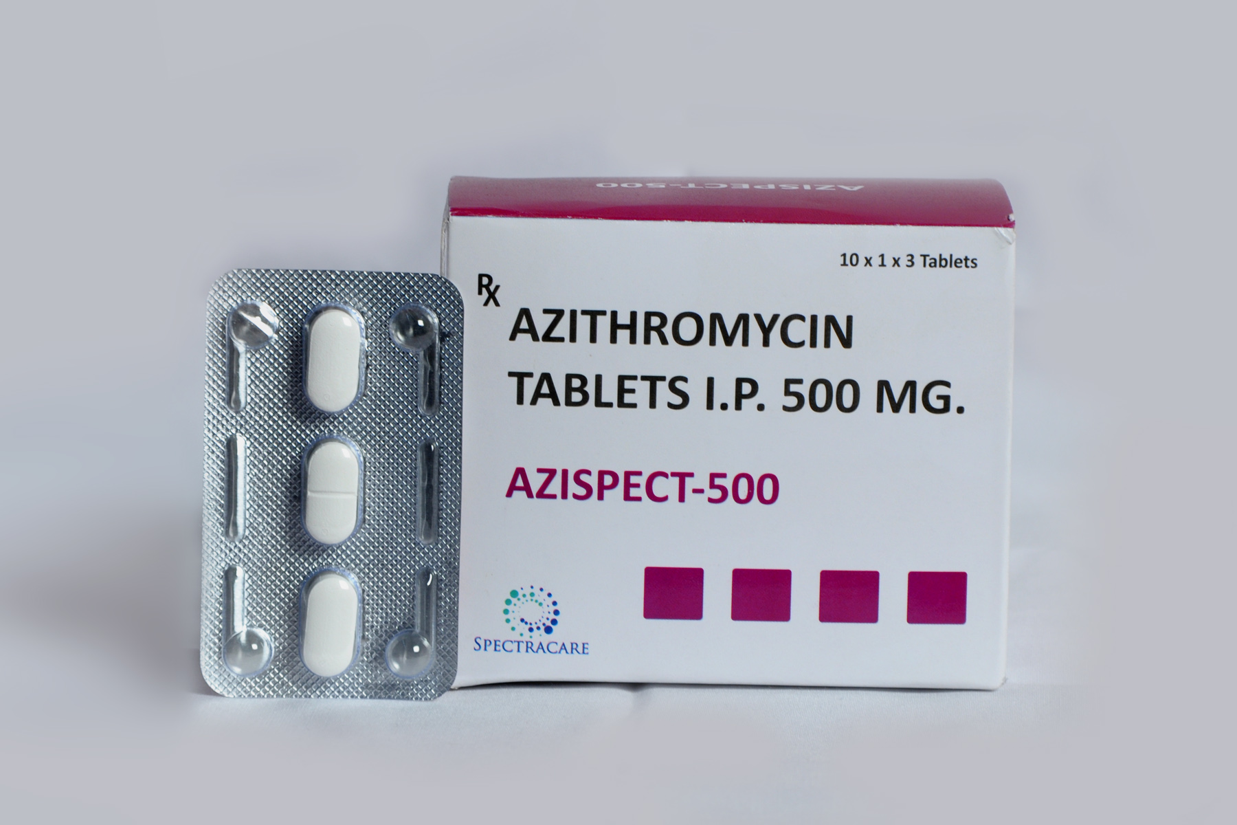 Azispect 500 Tablet is a broad-spectrum antibiotic used to treat bacterial infections of the respiratory tract, ear, nose, throat, lungs, skin, eyes, typhoid fever, and certain sexually transmitted diseases like gonorrhea.